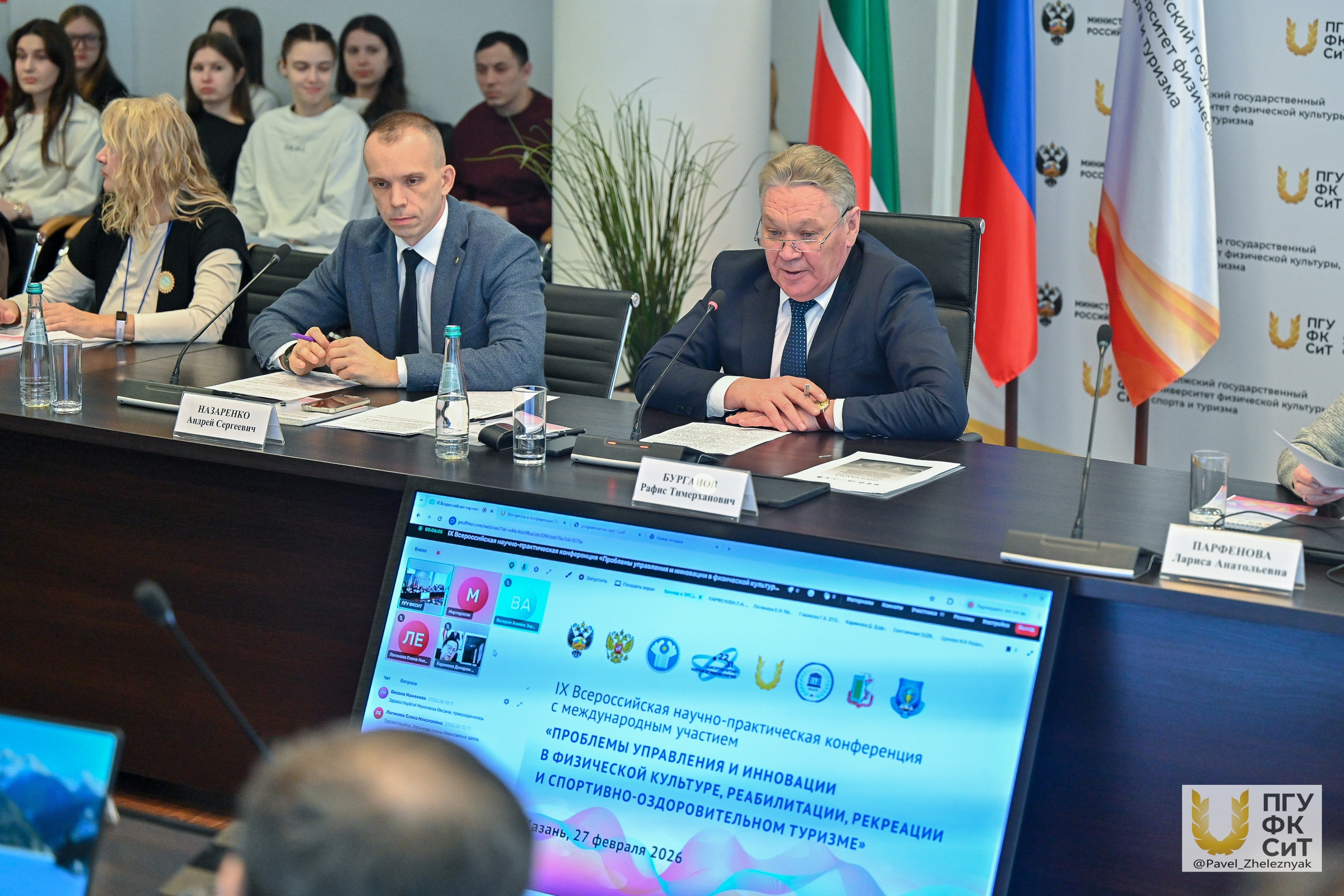 Конференция пленар утырыштан башланып китте, аның модераторлары фәнни эш һәм халыкара эшчәнлек буенча проректор Андрей Назаренко һәм адаптив физик культура кафедрасы профессоры Галина Голубева булды. Фикер алышуны адаптив физик культура кафедрасы мөдире Лиса Парфенова «Интеллектуаль тайпылышлы балаларны адаптив физик тәрбияләүдә спорт-төр алымын формалаштыру эволюциясе»доклады белән ачып җибәрде. Ул ассызыклаганча, тикшеренүләр кысаларында физик тәрбияне куллану һәм махсус балалар белән коррекцион эш тәҗрибәсен тасвирлаучы 154 диссертация эше өйрәнелгән.